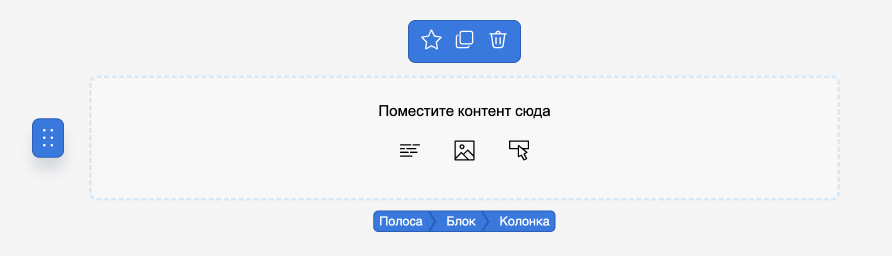 Вы можете добавить контент в пустой блок, нажав соответствующие иконки внутри элемента: