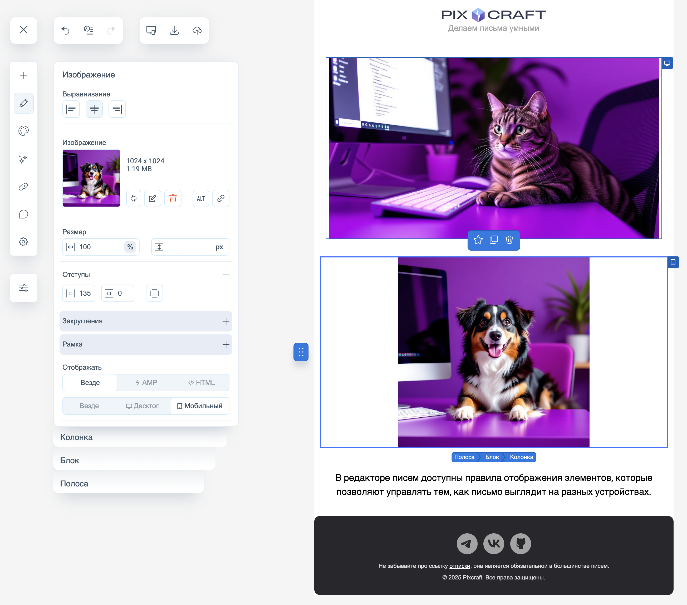 квадратное изображение — отображать только на телефоне